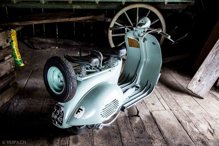 Published Mai 25, 2014 at 2683 × 1788 in Knackig im Erstlack: Vespa ACMA Modèle 1954 mit 2’369 km ‹ Return to post