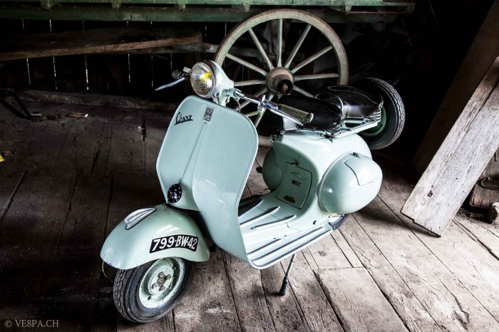 Published Mai 25, 2014 at 2616 × 1744 in Knackig im Erstlack: Vespa ACMA Modèle 1954 mit 2’369 km ‹ Return to post