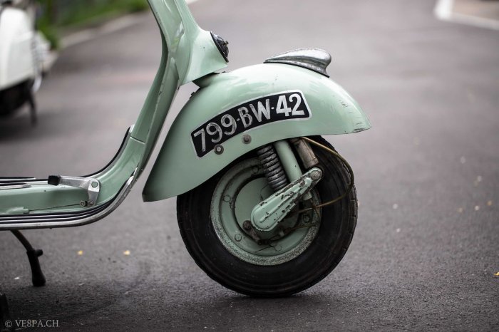 Published Mai 25, 2014 at 2784 × 1856 in Knackig im Erstlack: Vespa ACMA Modèle 1954 mit 2’369 km